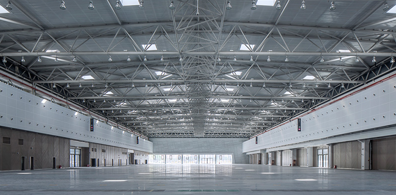 花橋國際博覽中心總占地面積21.5萬平方米,總建筑面積12.4萬平方米,實際可用展覽洽談面積達10萬平方米。主要由7個1萬平方米的展廳及3萬平方米的洽談區域構成,共可容納近3500個國際標準展位。