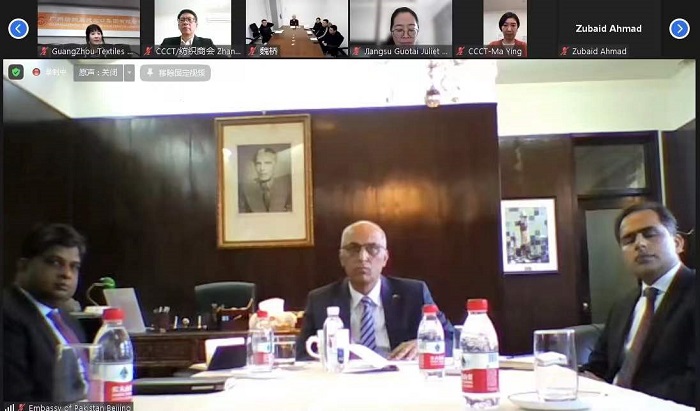 近日,中國-巴基斯坦紡織產業合作交流會在線上成功舉辦。本次交流會由中國紡織品進出口商會、中國駐巴基斯坦大使館、巴基斯坦計劃發展部、中巴經濟走廊事務局以及巴駐華使館聯合舉辦。巴基斯坦計劃發展部長阿薩德·烏邁爾、總理走廊事務特別助理哈立德·曼蘇爾、駐華大使莫因·哈克,中國紡織品進出口商會會長曹甲昌、中國駐巴基斯坦使館經商公參謝國祥出席并致辭,來自中巴雙方的紡織企業代表線上參會。